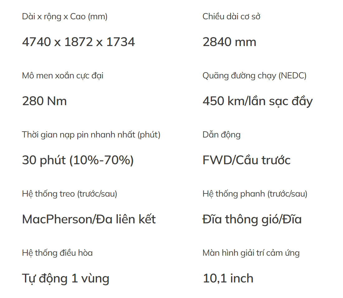 VinFast VF MPV 7 sở hữu kích thước Dài x Rộng x Cao lần lượt là 4.740 x 1.872 x 1.734 (mm) cùng chiều dài cơ sở 2.840 mm, đảm bảo không gian nội thất thoáng đãng vượt tầm phân khúc và sự thoải mái tối đa cho cả 7 người ngồi. Khoang lái được thiết kế hiện đại và tiện nghi với vô-lăng D-Cut bọc da, tích hợp các phím bấm đa chức năng; cần số điện tử đặt sau vô-lăng; màn hình thông tin – giải trí kích thước lớn 10,1 inch, hỗ trợ kết nối Android Auto và Apple CarPlay; ghế bọc da nhân tạo; hệ thống điều hòa tự động tích hợp chức năng lọc bụi mịn PM 2.5 và cửa gió ở cả 3 hàng ghế… Với dung tích khoang hành lý có thể mở rộng lên tới 1.240 lít khi gập các hàng ghế sau, VF MPV 7 sẵn sàng đáp ứng mọi nhu cầu chuyên chở cho cả gia đình.